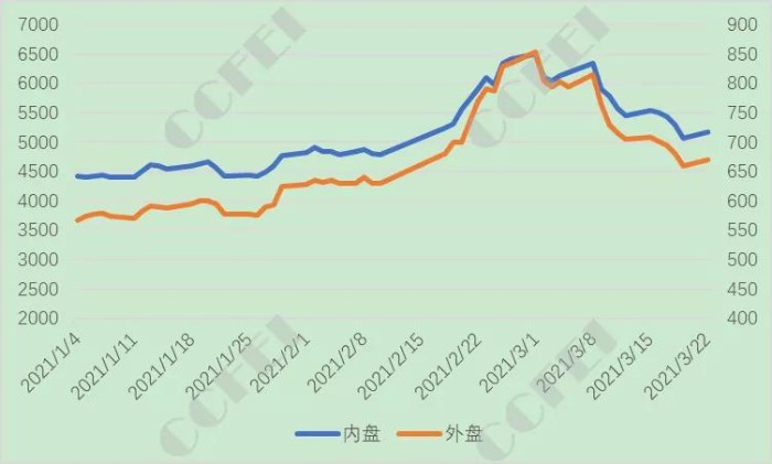Figure 1 MEG price trend in the first quarter (unit: yuan/ton)