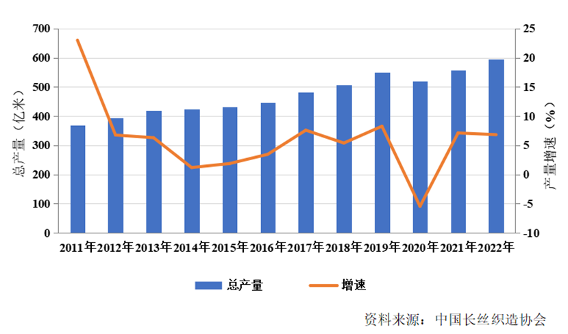 According to statistics from the China Filament Weaving Association, as of the end of 2022, the scale of looms in my country’s filament weaving industry reached 836,000 units, including 770,000 water-jet looms, a year-on-year increase of 5.48%. In 2022, my country’s total output of chemical fiber filament fabrics will reach 59.5 billion meters, a year-on-year increase of 6.82%.