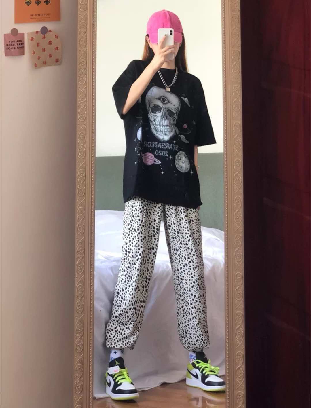 This t-shirt is so cool Got it! Guochao T-shirts really have a sense of design, and the fit is also good and slimming. Paired with leopard print pants, it’s a cool combination for you. It’s a super cool set!