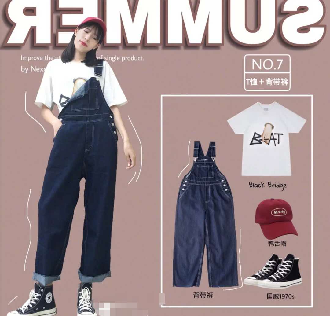 In fact, overalls are not just a representative of cuteness. The wide-leg denim style is so cool! Put one shoulder strap down to reveal the T-shirt pattern, and you will feel like Super Mario when you put it on.