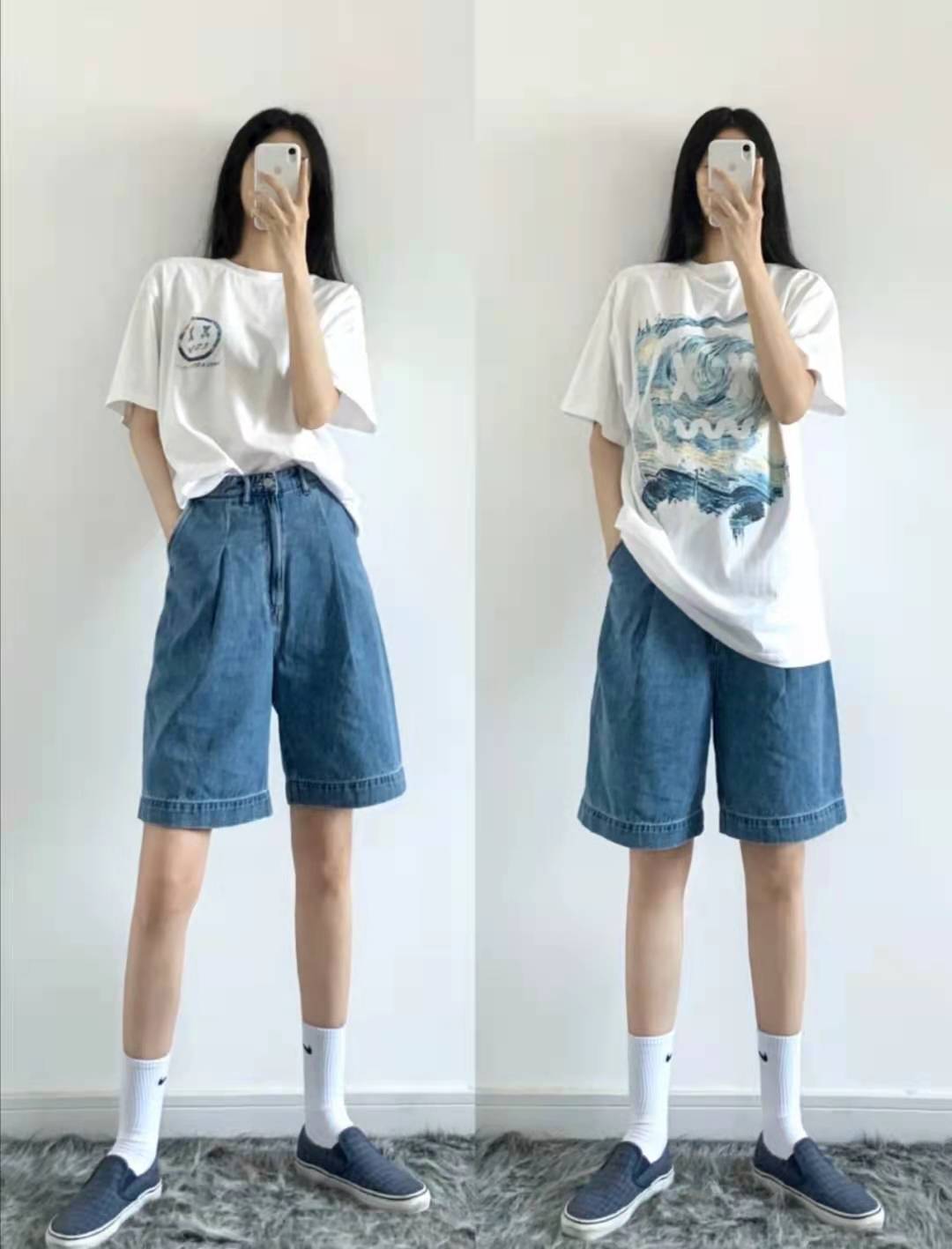 Refreshing and comfortable without losing street style. Pair the short sleeves with a trendy brand T-shirt. You can choose a slightly larger size. It can be worn casually tucked into pants or knotted at the hem. You can choose a simple and attractive style for the T-shirt; wear ripped denim shorts + white shoes underneath, which are a common item in your summer wardrobe. Versatile and classic, it also makes your legs look longer.