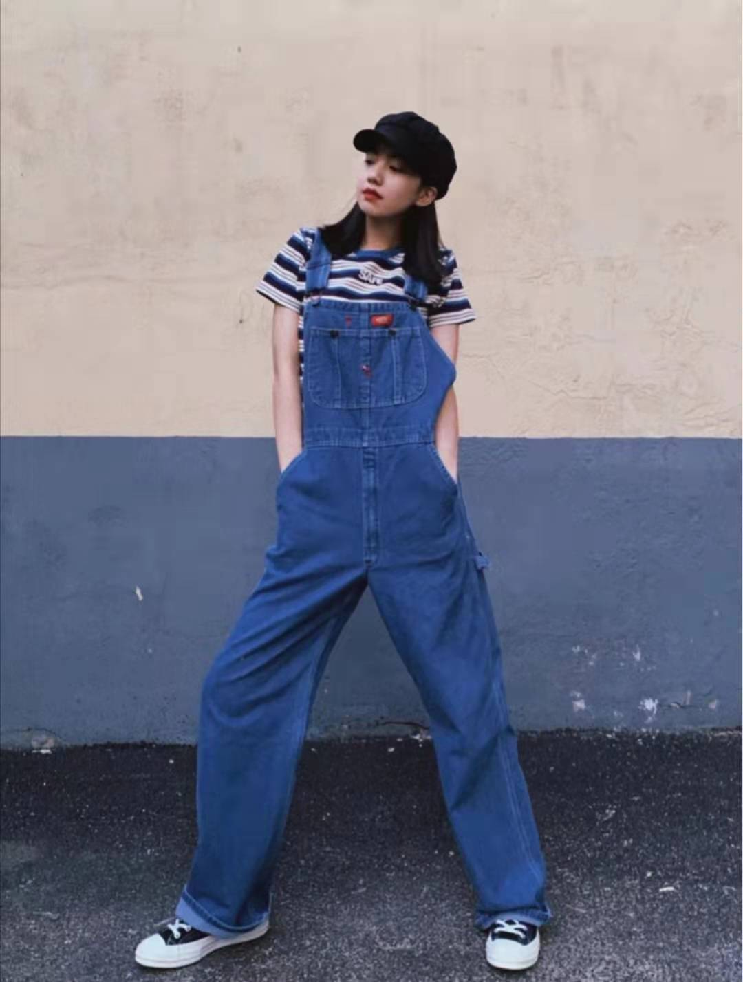 Overalls + striped T-shirt are simply a magic tool for reducing age, and these overalls really make your legs look longer! Tall girls can also manage it perfectly. The inner outfit is a style that I caught immediately, and the upper body is very cute! It is also easy to match, it can be paired with overalls or shorts, and it can be worn with classic black canvas shoes.