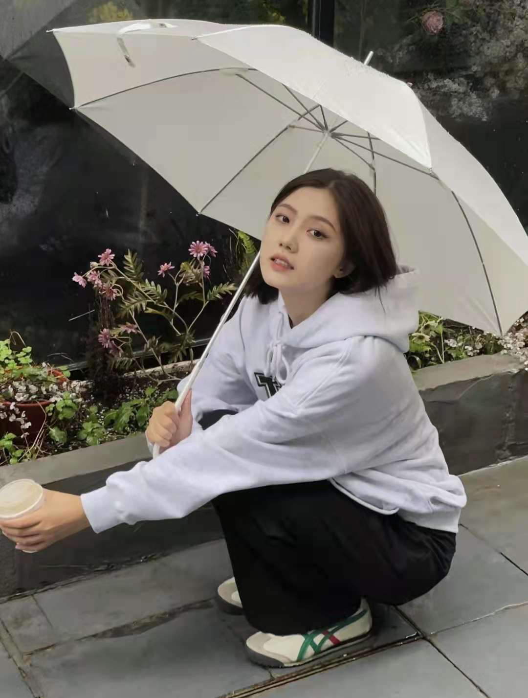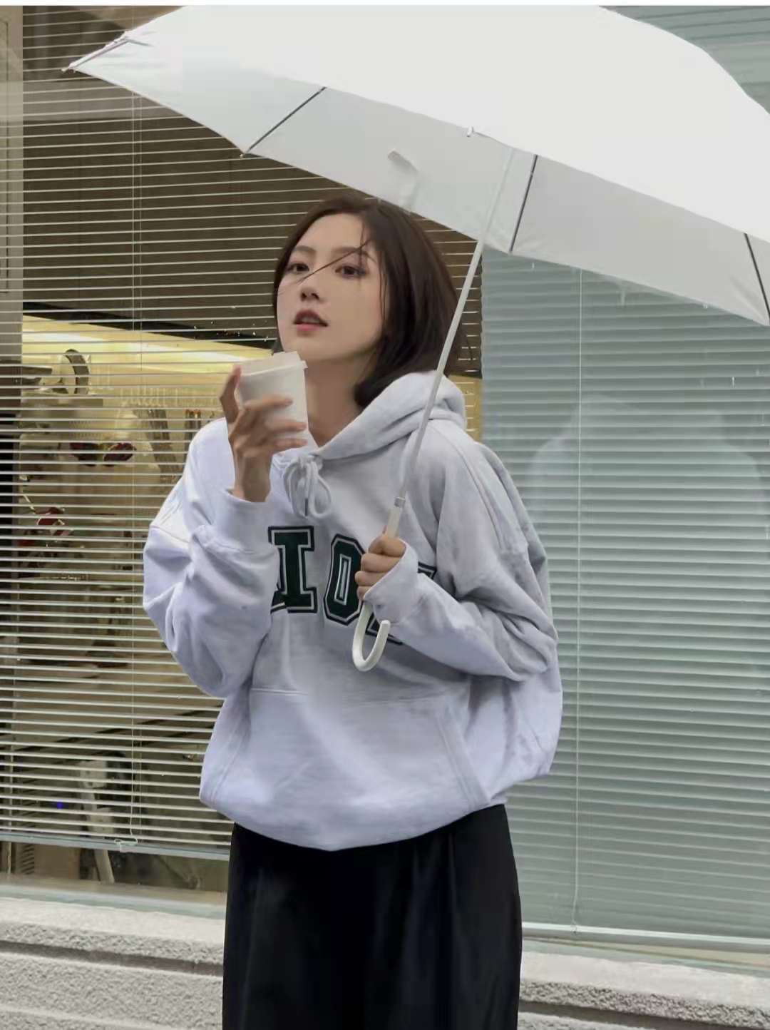 Sweatshirt outfit:The same sweatshirt from rose that I recently bought, gray + The retro green lettering is so pretty! Moreover, it is a versatile and fashionable age-reducing style. It is especially suitable for spring when paired with black wide-leg pants and Onitsuka tiger casual shoes.