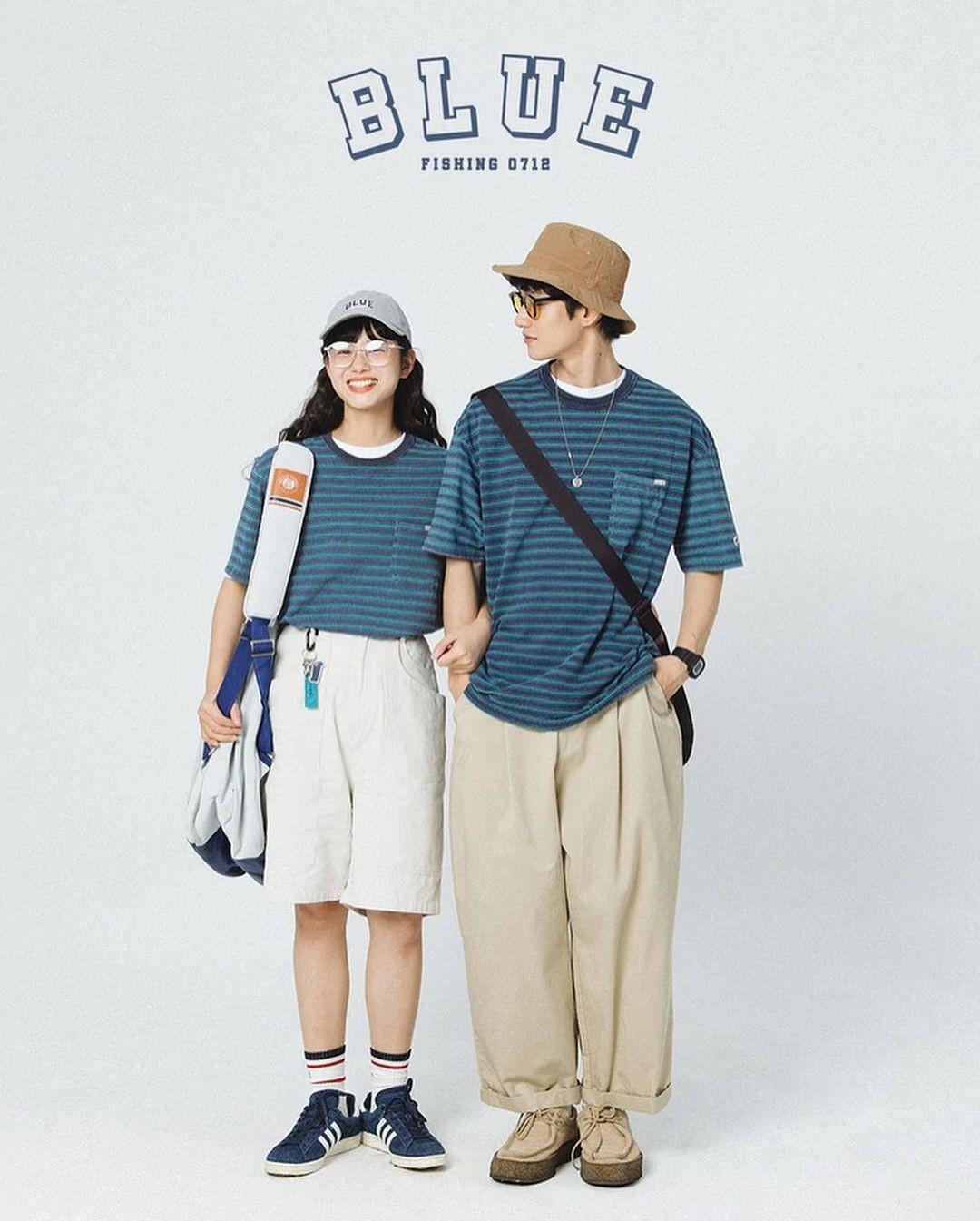 Many couples are very fond of striped T-shirts, and their appearance rate is quite high. This kind of gender-neutral photo shoot is very popular among people. It pays attention to the top and bottom depth, so there is no need to worry about ruining the beauty.