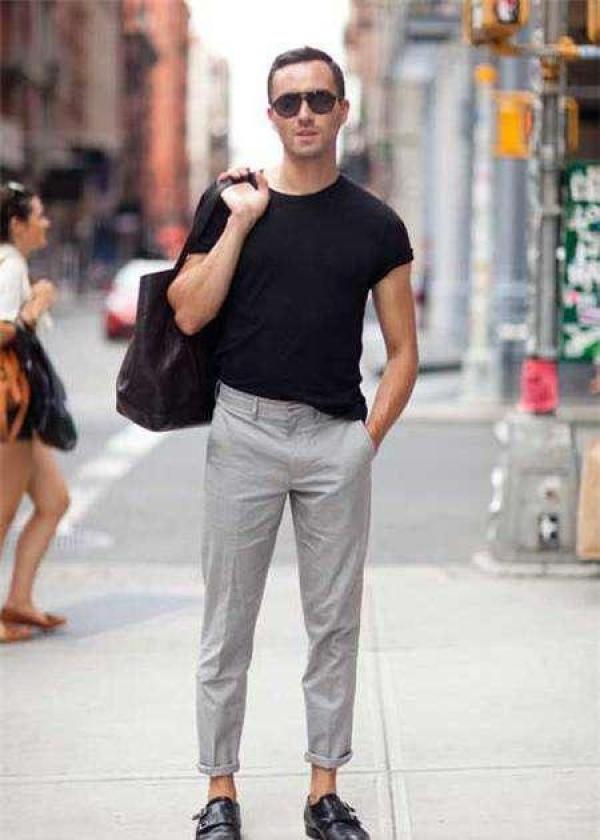 In terms of style, remember not to be tight-fitting, as that will look very girly. You should choose slim or fitted. It is necessary to talk about it here: if you wear a T-shirt outside If it is too long, it must be modified. This small detail must be paid attention to.