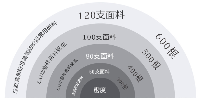 Take pure cotton bedding as an example. Cotton generally has 21-count, 32-count, 40-count, 50-count, and 60-count cotton. The higher the count, the denser, softer, and solid the cotton. 60-count and 300-count bedding is considered high-count and high-density, which is more suitable for sleeping. Domestic five-star hotel bedding products generally have 60-80 count and 300-400 count.