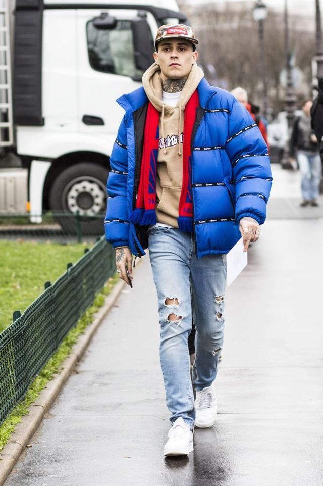 The usual choice for men’s down jackets is black, which is good-looking, warm and easy to match, so any color Jeans can be used, the dark colors echo the overall atmosphere, and the light colors present an uninhibited fashion sense. Denim has a lot of holes in it, and mature men rarely try it, but when they are in their prime of youth and have a certain grasp of fashion, their tops are super attractive when they go out on the street.
