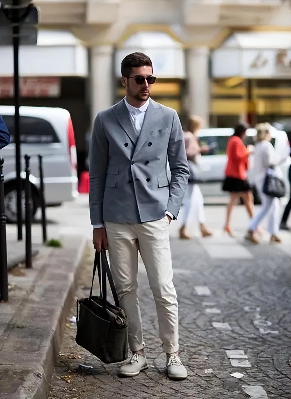 Many people have a misunderstanding about light-colored trousers. If you think it looks fat on your upper body, actually choosing the right style will make your look more beautiful. White and black have different sense of stability. It is more energetic and can be combined with suits of any color. There is no pressure on the upper body and it is also very dazzling in the crowd.