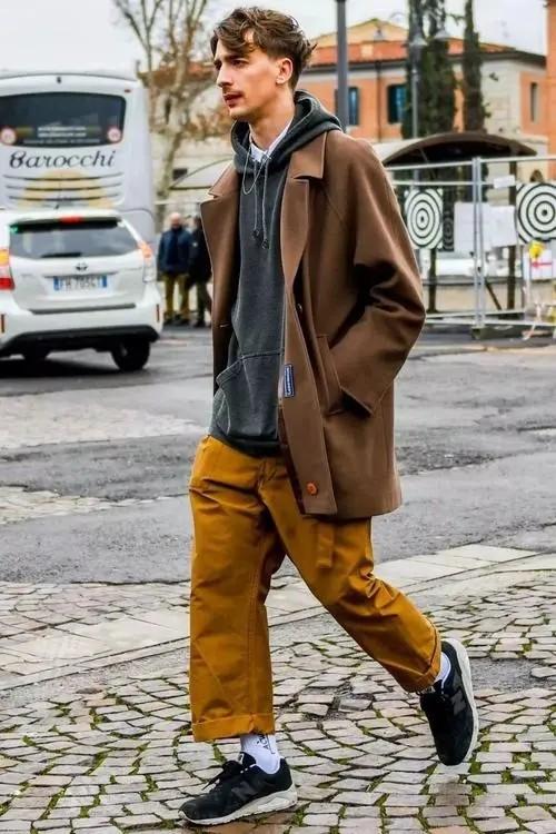 Any item you can imagine can create unique sparks with other different styles. In everyone’s impression, sweatshirts are very comfortable and casual, and many men’s upper bodies become full of boyishness and youthful vitality. But when combined with an atmospheric coat, the two did not destroy each other’s magnetic field, but instead presented a more handsome and fashionable appearance.