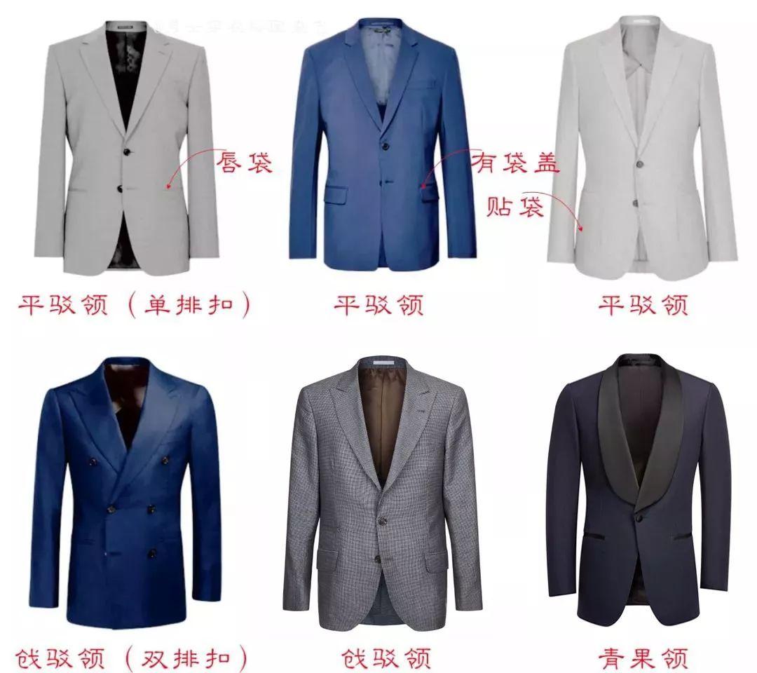 The collar types of suits can be divided into three types: ① Flat-buttoned Collar; ② Peel collar; ③ Green fruit collar.