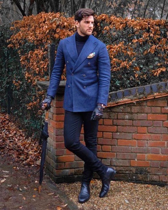 Pairing it with a turtleneck sweater is a good choice in autumn and winter. The style is warm and elegant. It can also be used with sweaters and suit collars. It forms a good sense of layering. A double-breasted woolen suit will keep better warmth. Paired with a pair of leather boots, the look will look very masculine.