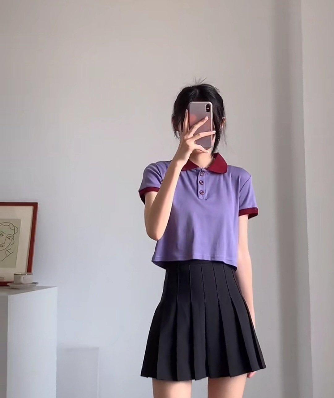 When a polo shirt meets a skirt, you can wear it like a fairy, with its own age-reducing effect. It has a complete campus goddess look, is simple and attractive, and the overall look is youthful and youthful. Show vitality.