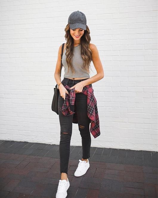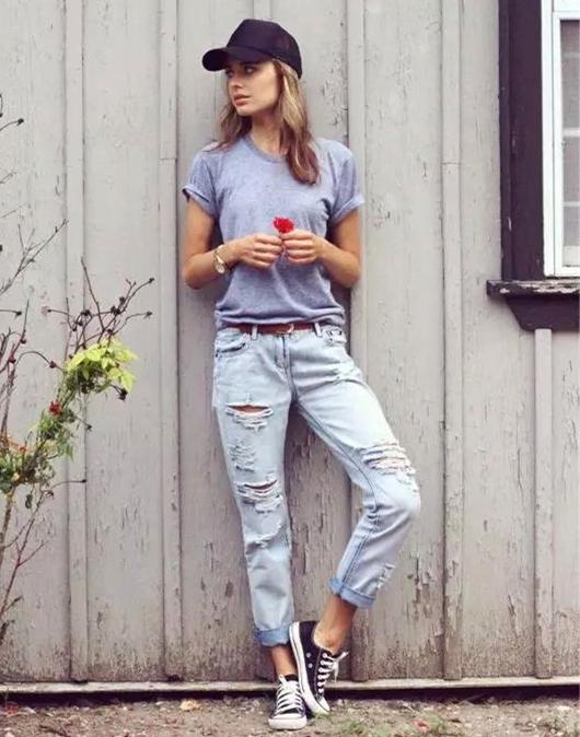 If the little fairy thinks that the black baseball cap is too popular, then change it to gray Baseball cap! Show off your body openly and openly. The gray sleeveless T-shirt is “top of the list”. When paired with black ripped jeans, it is neat with a touch of elegance, and is straightforward yet high-end. Tie a red plaid shirt around your waist to show off your personality and make you stand out from the crowd. When you encounter clean white shoes, they are more than a little comfortable. Have you learned how to do it?