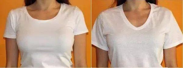 如果存在以上这些小烦恼,也不要着急,上身丰满的妹子们可以选择介于圆领和V领之间的小U领和小鸡心领,这两款领型避免了穿V领容易走光和轻浮的问题,同时又避免了短脖子穿圆领显脸大的问题。