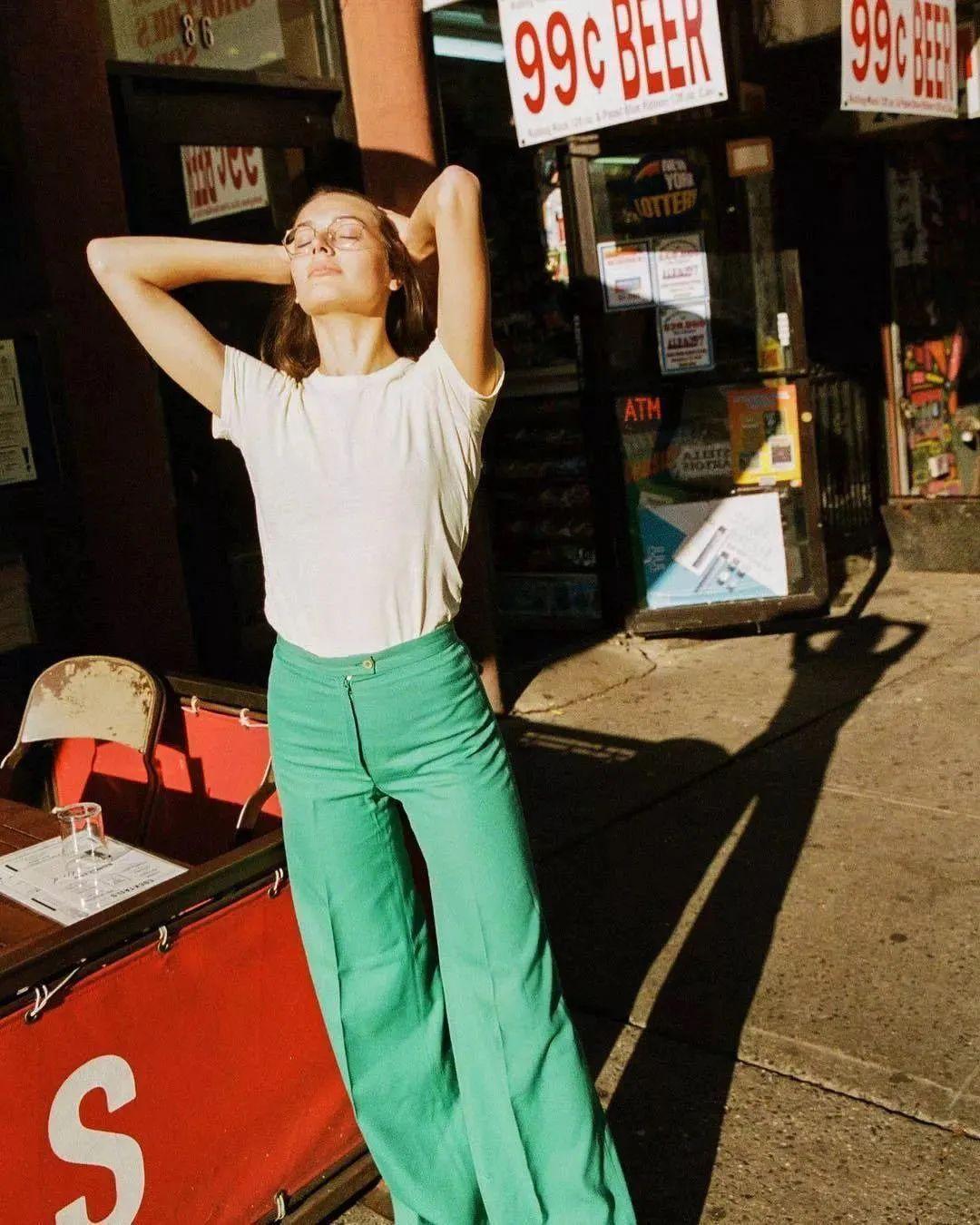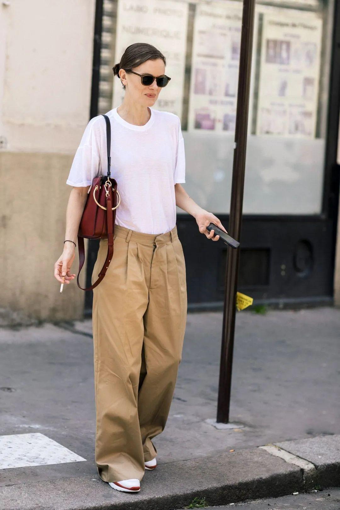 材质飘逸,气场潇洒随性的长裤,是搭配净版白色T恤的最佳伴侣,它们互为补充和对比,在通勤职场领域,既大气简洁,又彰显着无声息的高级与松弛。