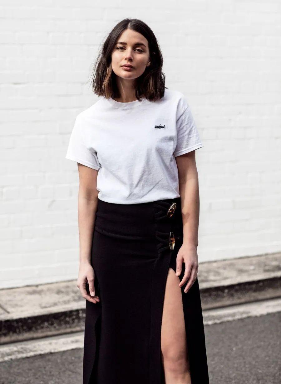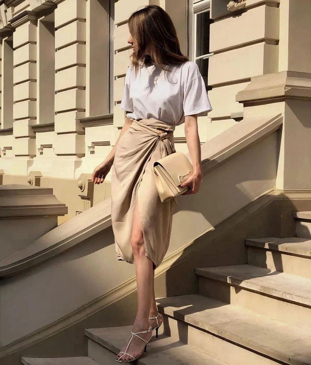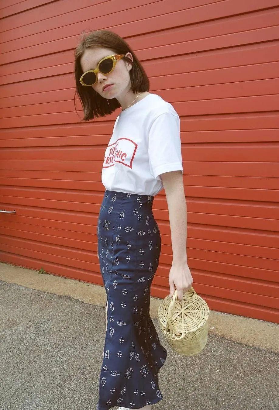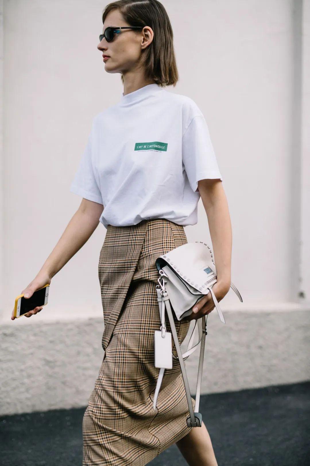 而女人味属性的半身裙,可以给中性化的T恤弥补充满柔情的那一面魅力,同时反过来,提升半身裙的利用率,即便是性感一点也不怕,反倒格外凸显女性大胆有张力的把控度。