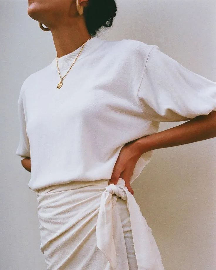 只是我们需要提前做好功课,如何从款式、面料、剪裁下手,挑选到非常适合自己、同时精炼优质的小白T,这样我们才能穿出有腔调的高级感。