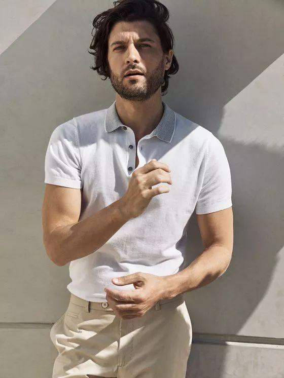 The same goes for matching a POLO shirt with ordinary chinos. Wear it casually. Lucky shoes or sailing shoes can be clean and natural, showing the charm of a mature man. If you have a particularly good figure and good looks, you can choose a more slim-fitting POLO shirt as shown in the picture below; if the above conditions are not met, it is recommended to choose a slightly looser style to look more youthful.