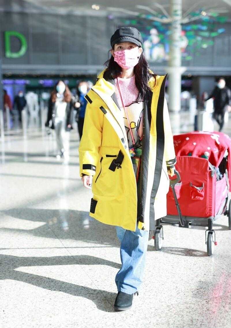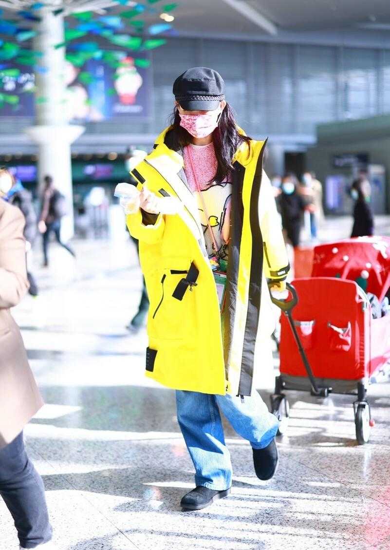 Some women have natural clothes-hanging figures. Women with this figure will have great advantages when dressing. Even if they dress randomly, they will look very fashionable. If you don’t believe it, Just take a look at Cai Shaofen. When walking to the airport, she wore a yellow jacket. This kind of extended bright yellow jacket would look like a walking lemon on ordinary people, but when worn on Cai Shaofen, who has a clothes-rack figure, But it looks extremely fashionable.