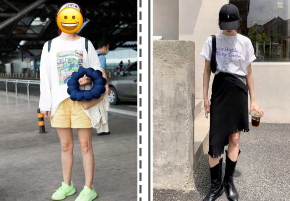 But wouldn’t it be much better to tuck the T-shirt into the pants? This way it can easily highlight the waistline, increase the proportion of the legs, and highlight the visual sense of long legs.