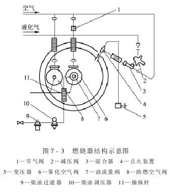 A burner using diesel as a heat source generally consists of an ignition system, a combustion system, a combustion atomization system and an oil supply system. Figure 7-3 is a schematic diagram of its structure.