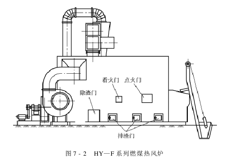 HY-F series coal-fired hot blast stove is a new type of high-efficiency, energy-saving, low-pollution heat source equipment, as shown in Figure 7-2, which is widely used in Xinjiang and the mainland.