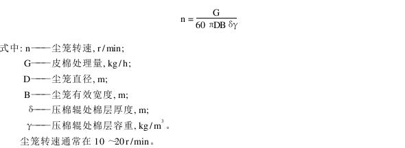 Dust cage speed�The speed directly affects the thickness of the cotton layer on the surface of the dust cage. The thickness of the cotton layer is preferably 200~250g/m2. If the dust cage rotates too fast, the cotton layer will be too thin, resulting in increased loss of effective fibers; if the dust cage rotates too slowly, the cotton layer will be too thick, which will increase the exhaust resistance and even cause the sawtooth gin machine’s impurity discharge adjustment plate to fall. Cotton increased. The rotation speed of the dust cage can be determined by the following formula.