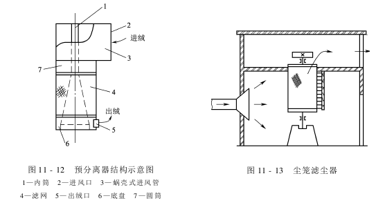 Dust cage dust filters come in two forms: standing and horizontal. Cotton finishing plants usually use standing dust cage filters, as shown in Figure 11-13. The dust cage dust filter has a simple structure, is not easy to burn, is easy to use, has a large air volume, and has a small resistance, generally 150 to 200 Pa, and saves an area. Its disadvantage is that dust cages generally use wire mesh as the filter material, and due to the holes, Larger, short fibers and fine dust are easier to pass through, which not only loses fibers, but also increases the burden of cleaning and recycling, affecting dust removal efficiency. Therefore, it is only suitable for handling dust with slightly longer fluff and larger particles, and is more suitable as a primary dust removal equipment.