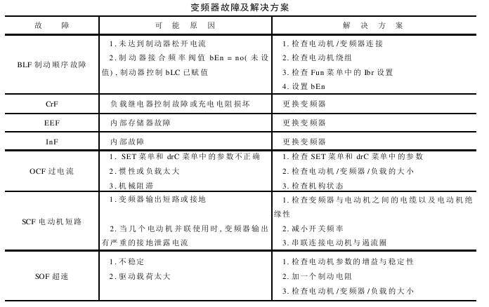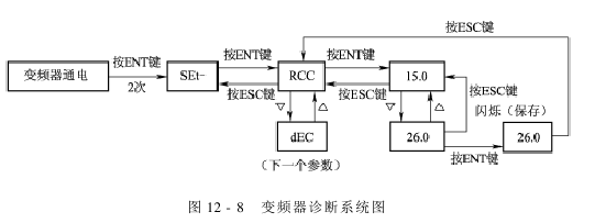 The frequency converter diagnosis flow chart is shown in Figure 12-7, the frequency converter diagnosis system diagram is shown in Figure 12-8, and the frequency converter faults and solutions are shown in the table below.