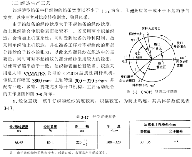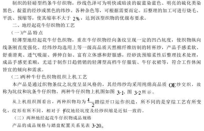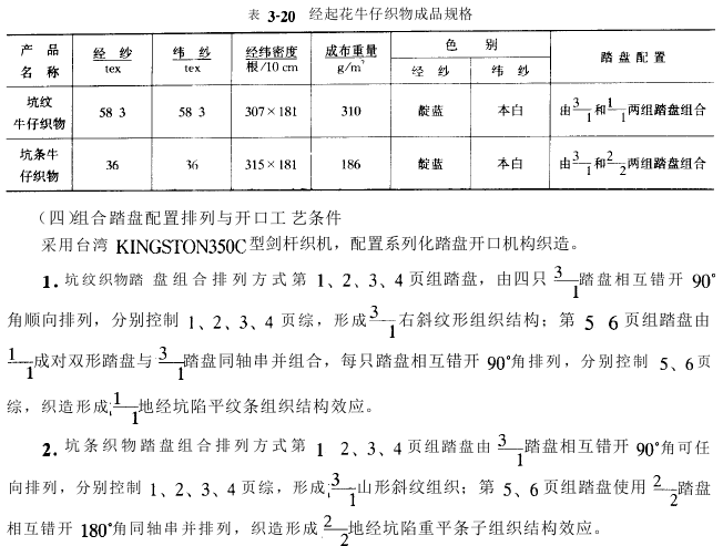 The crepe denim fabric is light-weight type, and the specifications are shown in Table 3-15.