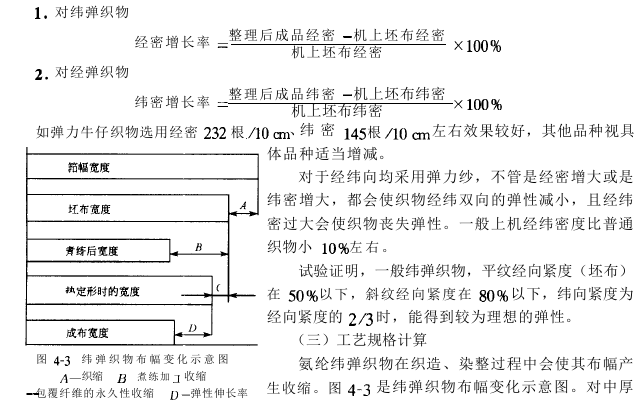 Therefore, design calculation data such as warp length, effective width, reed width, warp density, and weft density should be determined after trial weaving. The change from machine density to cloth density can be expressed by warp density growth rate or weft density growth rate.