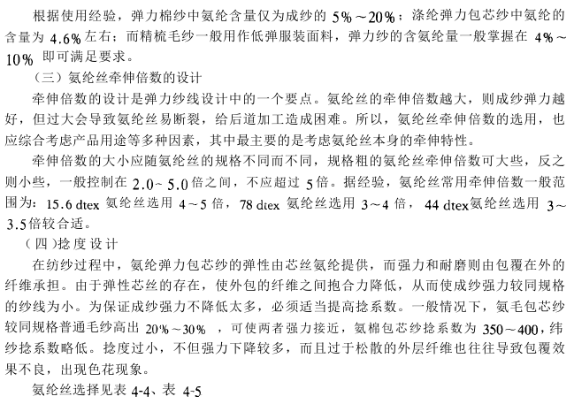 (1) In addition to making the fabric achieve the required wind characteristics, product specification design also determines the elasticity that the fabric can obtain in the warp and weft directions. When designing, we must first clarify the purpose of the fabric, determine the required elasticity in the warp and weft directions of the fabric, and comprehensively consider factors such as raw materials, linear density, organization, and density, as well as the spandex draft multiple, spandex content, and twist in the spinning yarn.
