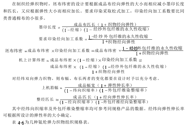 (3) The retraction of the spandex yarn in the relaxed tension state will cause the fabric to shrink significantly after the warp and weft are lowered into the machine and during the dyeing and finishing process. Therefore, during process calculation, the reed width and warping length should be increased according to the warp and weft elasticity of the finished product, and other data should be adjusted accordingly.