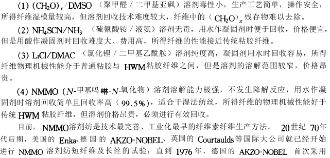 Research on solvent-spun cellulose fibers began in 1939. For decades, scientists have searched for and tested a variety of direct solvents for cellulose. However, from the perspective of industrialization, the following cellulose solvents have important industrial significance.