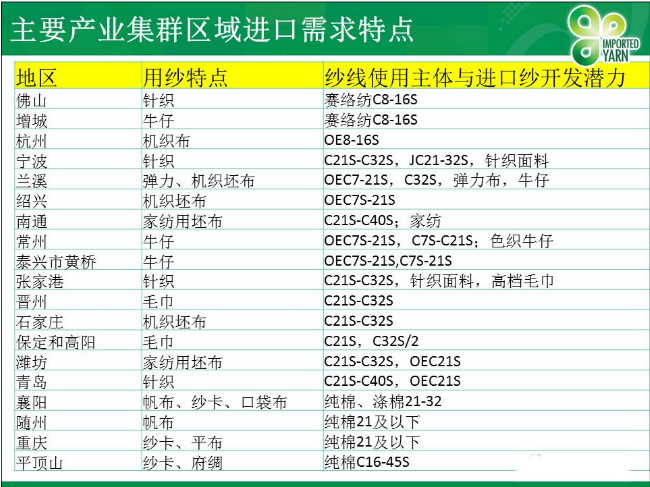 Research on the regional characteristics of imported yarn price structure and consumption and the development prospects of the Chinese market