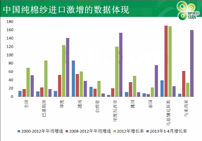 China’s pure cotton yarn import growth in 2013