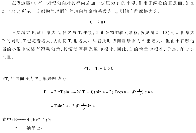 ②To balance Ta, a sufficiently large axial static friction force fa must be provided, so P must be large enough. Otherwise, it will not only affect the edge suction, but may even wrinkle or escape. However, P cannot be too large. Because, if P is too large, it will not only produce indentations on the fabric, but may also affect the fastness of the fabric fiber. Therefore, when installing the edge suction device, the pressure P between the small rollers must be carefully adjusted according to the type of fabric and α angle.