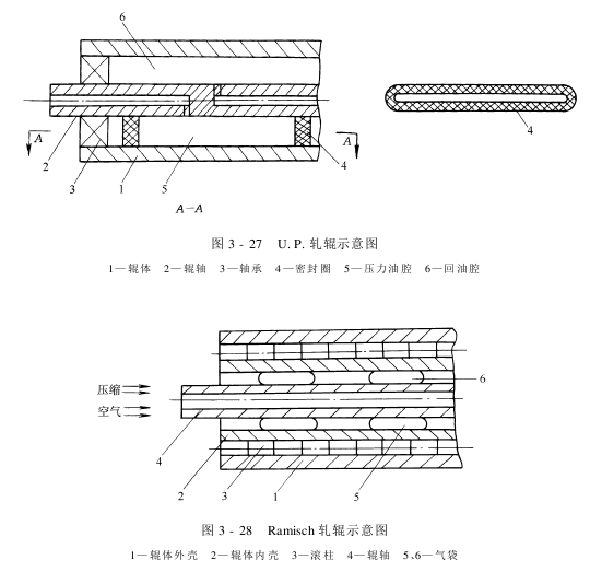 Japan has developed a similar uniform roll – U.P. roll, based on the principle of the German Küsters roll.�As shown in Figure 3-27. The sealing member of this roller is an oblong sealing ring, which has a simple structure and is easy to manufacture. However, due to the shrinkage of the pressure chamber, under the same working conditions, the pressure of the U.P. roller is about 3 times greater than that of the Küsters roller, seriously reducing the service life of the seal.