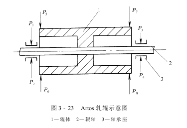 Figure 3 Shown at -23 is the Artos roller developed by the German Artos company. The lower roller is a normal roller, and the upper roller is the so-called Artos roller, which is a medium-solid roller with pressure at both ends. Eight pressure points are set on the roller body and both ends of the roller shaft of the Zhonggu roller. By adjusting these eight pressure parameters to adjust the pressure and deflection of the roll, the effect of improving the uniformity of the rolling fluid can be achieved. This type of roll is also effective when used on wide-width rolling mills. However, its structure is complex and its operation and maintenance are troublesome.